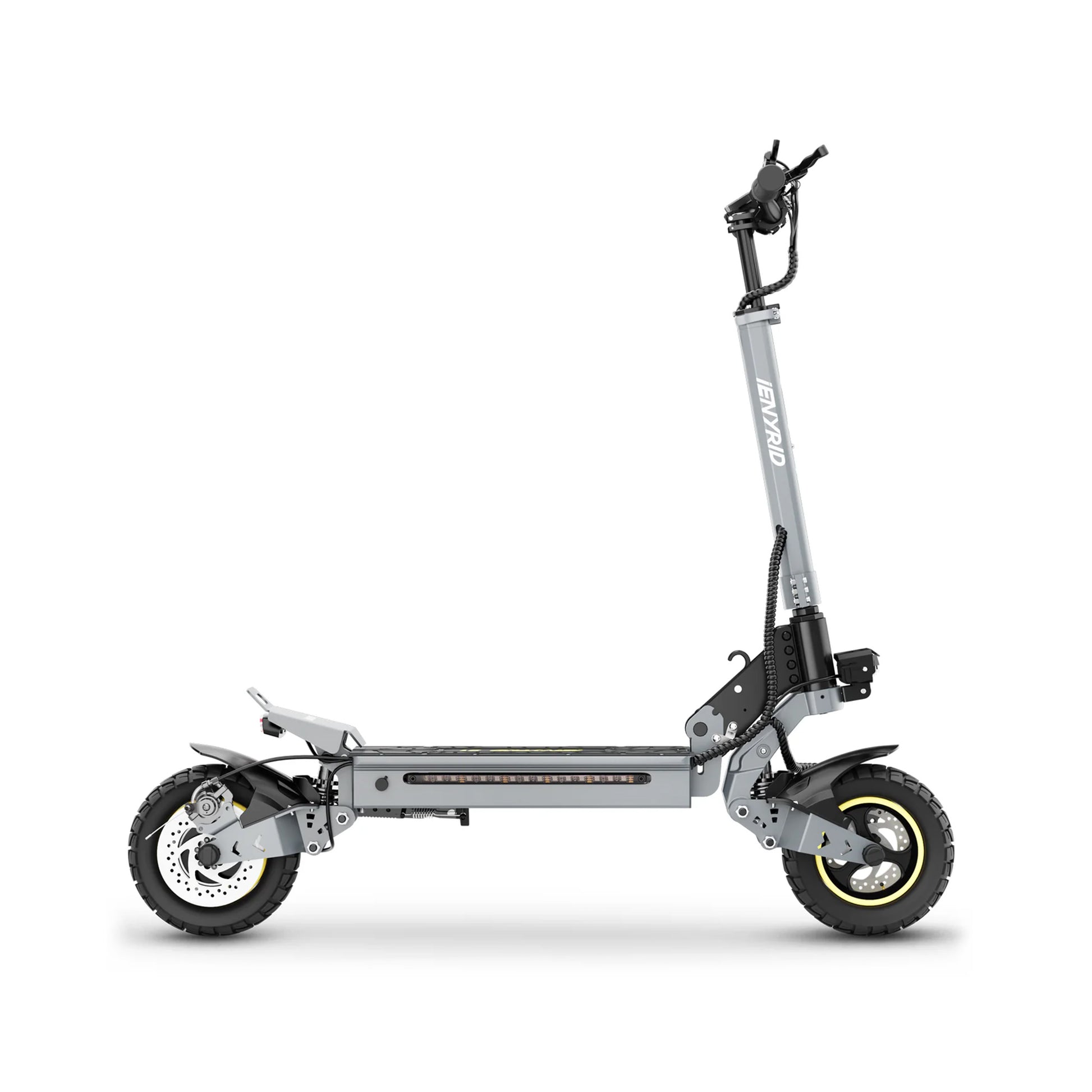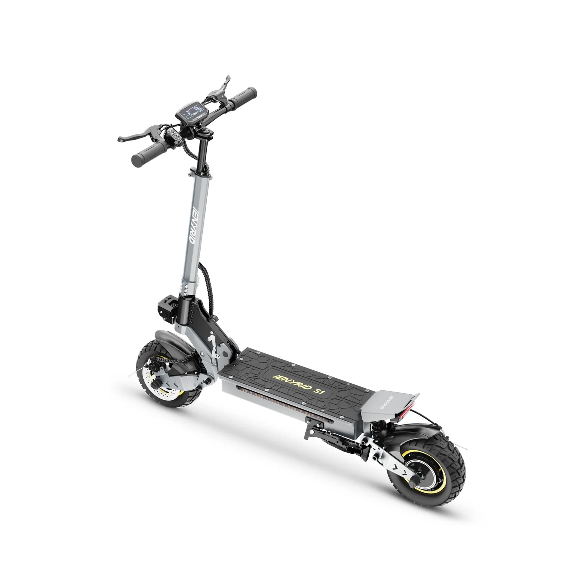Experience the thrilling performance of the iENYRID S1 Electric Scooter, crafted for those who crave adventure and reliability. Powered by a strong 700W motor, it reaches speeds up to 45 km/h, conquering diverse terrains with ease. Its 10-inch off-road tires and quad-arm suspension provide excellent stability and a smooth ride. The 48V 15Ah battery supports journeys up to 40 km, perfect for extended explorations. With a sleek, foldable aluminum frame, adjustable handlebars, and a 120 kg load limit, it offers comfort and versatility. Safety is ensured through dual-disc brakes, bright LED lights, and intuitive controls, making every ride secure and exciting.