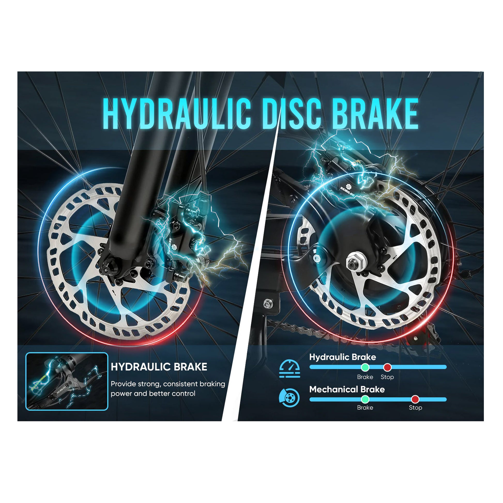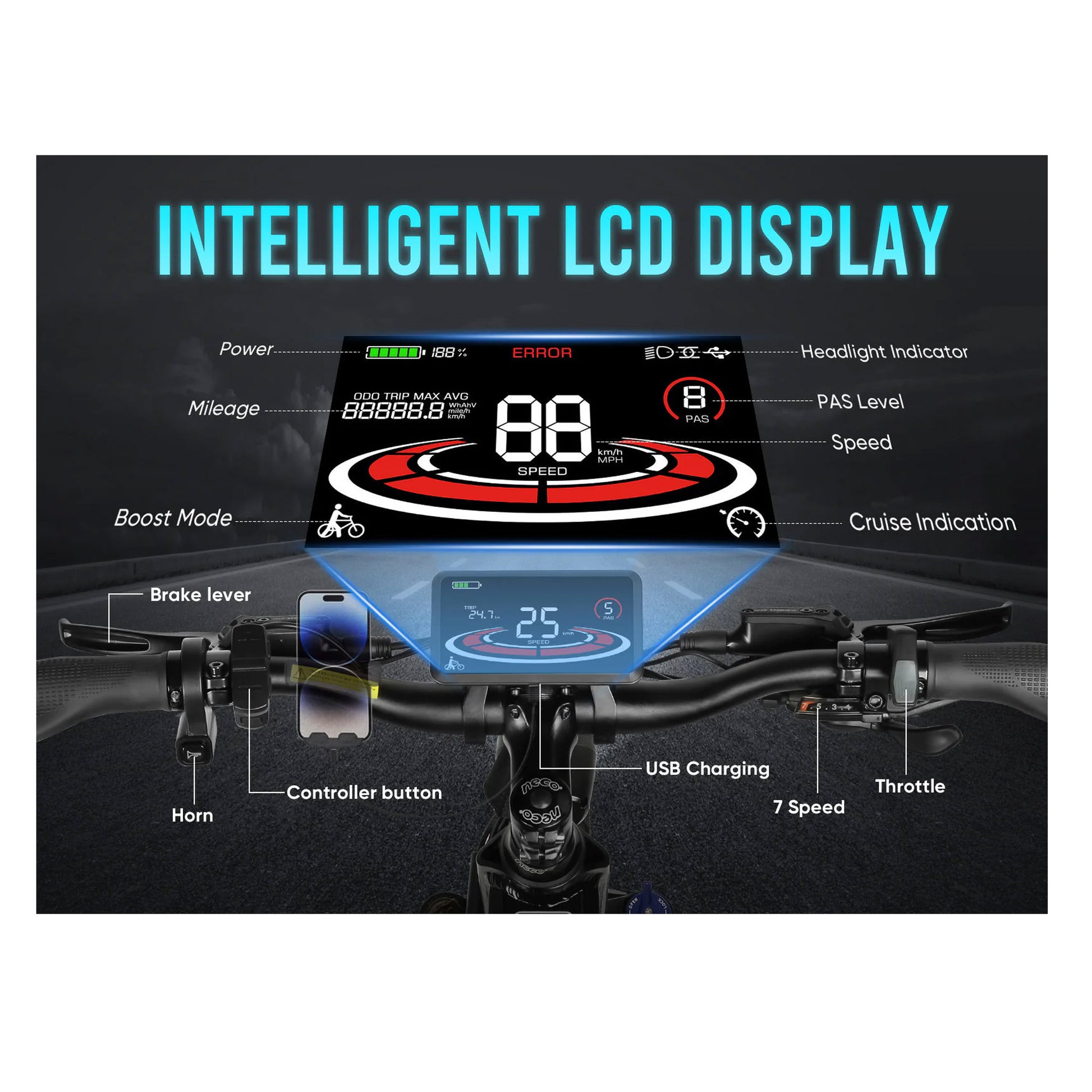 Experience uncompromising versatility with the Samebike LO26 Plus. Powered by a robust 720Wh lithium-ion battery, this folding e-bike conquers 50-100 km on a single charge—with the option to upgrade for even greater distances. Intelligent technology meets safety with hydraulic disc brakes delivering immediate stopping power, whilst an intuitive LCD display monitors speed, assistance levels, battery status, and mileage. Night-time visibility is assured through integrated LED headlights and reflectors. Navigate any surface confidently thanks to the dual shock absorption system and adjustable suspension fork that absorb impacts and smooth rough terrain. The ingenious foldable frame collapses compactly for effortless car storage, yet supports riders up to 150 kg with its reinforced construction. Customisable seating (870-1010 mm) suits heights from 1.55 to 2.03 metres perfectly. Seven-speed transmission paired with throttle and cruise control modes delivers responsive, intuitive riding. Built for those seeking durability, performance, and the freedom to ride further.